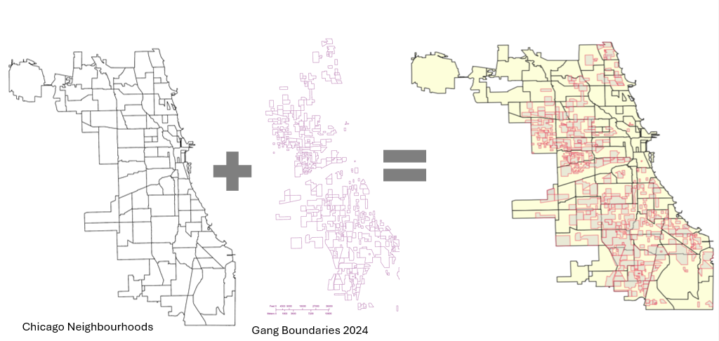 Gang territory boundary polygons overlaid with neighborhood boundaries to enable spatial intersection and proximity analysis (Figure 5).