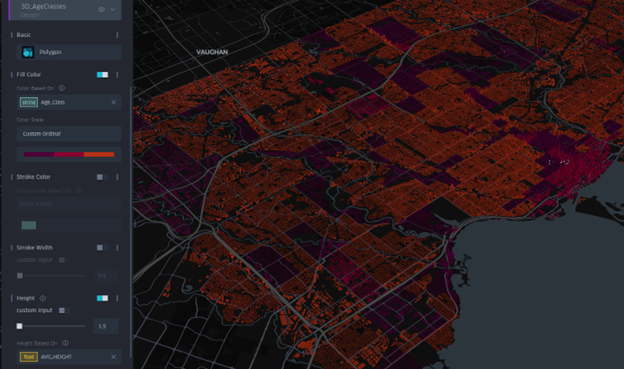 For this project, I explore how Toronto has grown and intensified over time, by creating a 3D animated geovisualization using Kepler.gl. I will be using 3D building massing data from the City of Toronto and construction period information from the 2021 Census data (CHASS).