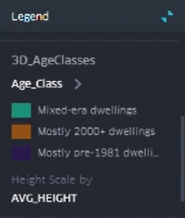 • Second layer, was a point layer also based on the age-classes. This would fill in the 3D massings as the time slider progressed, and was based on brighter colours.