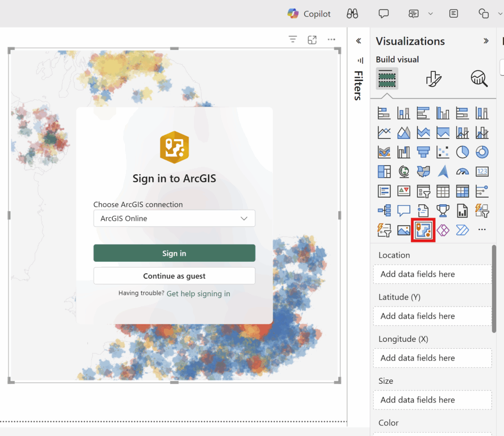 Add the ArcGIS for Power BI visual > Log in using your TMU Credentials.